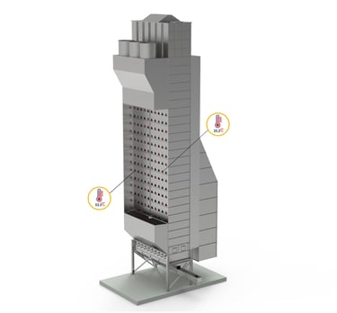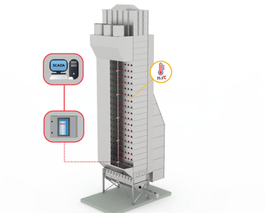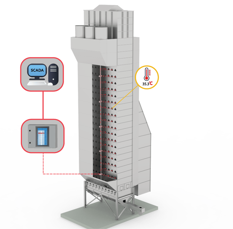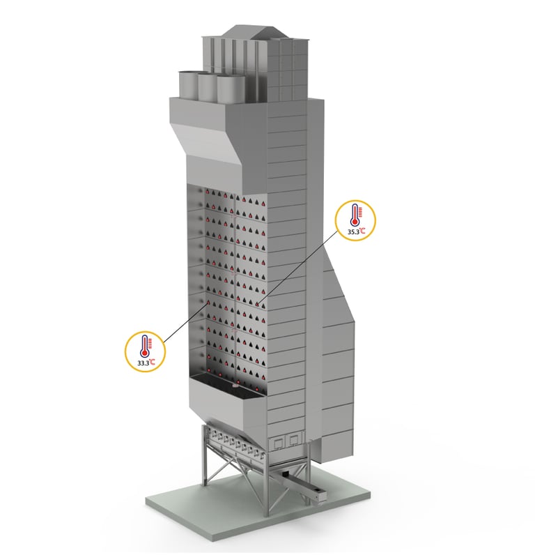 The temperature monitoring system ensures a safe and efficient grain drying process.